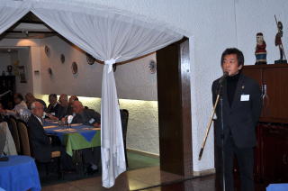 最後は南8期田村功さんの閉会の挨拶「このご縁を大切に」との言葉で会は無事お開きとなりました。 今年は前日の悪天候のため、参加人数が懸念されましたが、結果としては126名が出席し、例年以上に盛大な宴となりました。また食事も美味しかったと評判も上々でした。 ことし6月の総会懇親会は景気の動向もあり運営も懸念されるところです。竹島会長のスピーチにもありましたが、実行委員会皆さんには無理せず多くの同窓が集い、楽しめる会にしていただきたいと思います。 同窓の皆様、6月の総会懇親会でまたお会いできることを楽しみにしております。 南8期田村功さん(写真右→) なお2009年の開催結果レポートはこちらです。 |