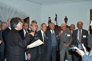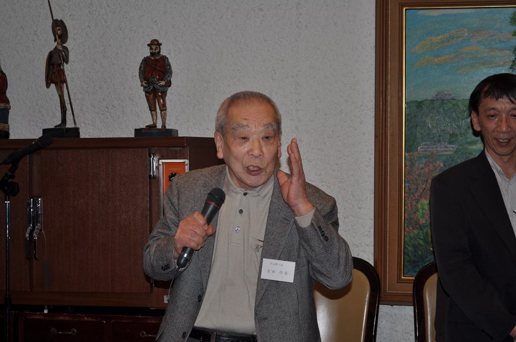 日比野弘明さん(中50期)が語った 一中時代の雪戦会の思い出、まだまだ 現役、共に苦しい時代をがんばろうと の言葉に、参加者全員が励まされる思 いでした。(写真上) |