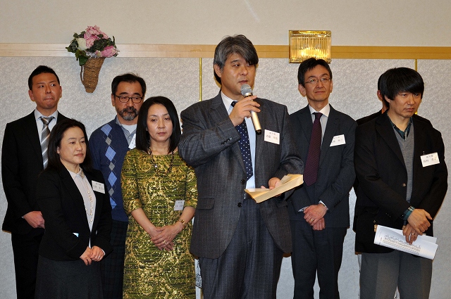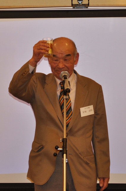 事務局長の阿部利男さん(南21期)から、 新しい広報委員長 塩田和久さん(南19期)、 副委員長 今井康人さん(南28期)の紹介があった。 ![]() 閉会の挨拶に立つ事務局長の阿部利男さん(南21期)。 「今年110周年を迎える東京六華同窓会、資料,ビデオ等データーの デジタル保存し、今後110年に引き継ぎたい。来年の1月23日 またこの会場でお会いいたしましょう。」 会場から拍手が沸き起こり、盛会のうちに今年の新春の集いも終了した。 |