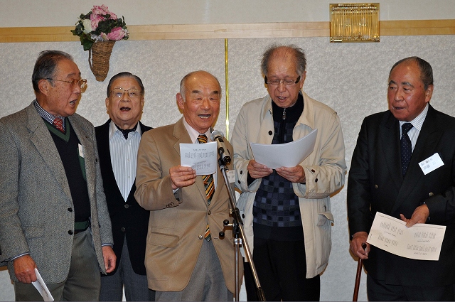 引き続き、一中期の先輩方ほか5人が壇上に登り、 |