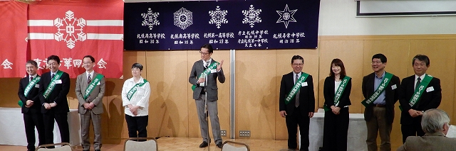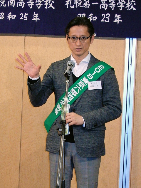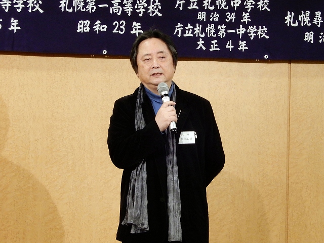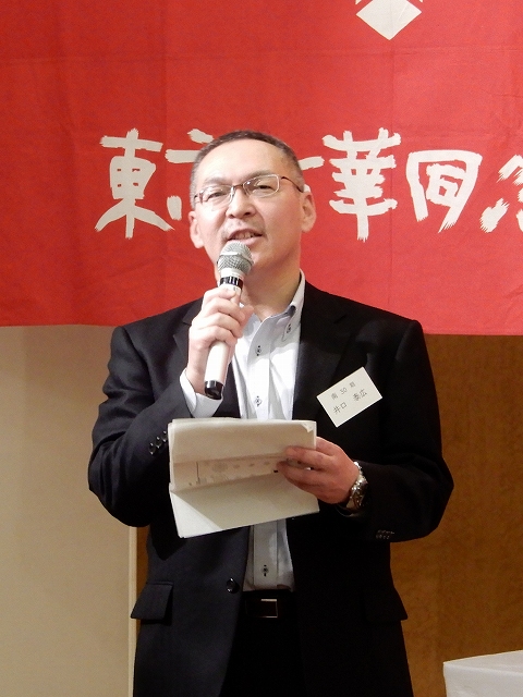新年の挨拶を行う会長の松岡拓公雄さん(南21期)。