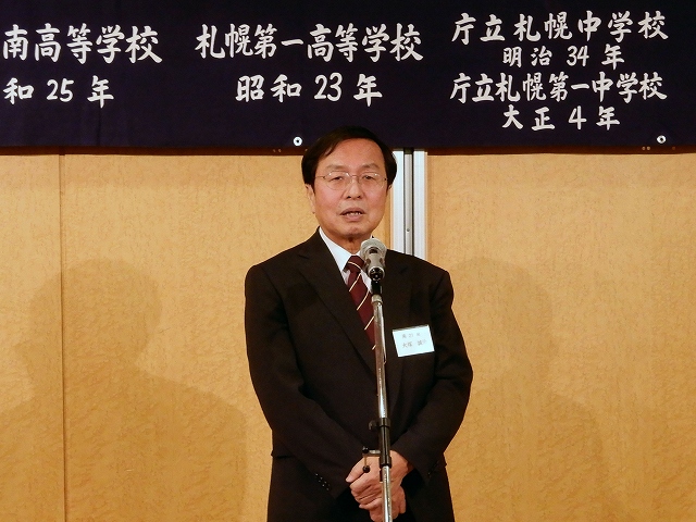 そして来年1月26日また新春の集いで元気でお目にかかりましょうと閉会の挨拶を行う 大塚誠治幹事長(南21期)。 |